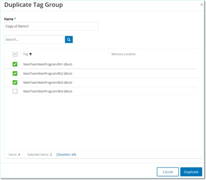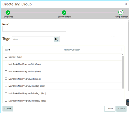 Shows each Tag that is included in the Group as well as the name of the controller in which it is located. Note: If you are unable to view all Tags in this row, then click Actions > View > Members tab. |