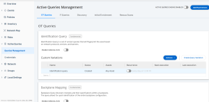 Tip: To allow active queries to function, click the Active Queries Engine Enabled toggle. After you enable the active queries, OT Security displays a on the header to indicate that the query engine is running. To run active queries, you must still enable each individual query separately.
