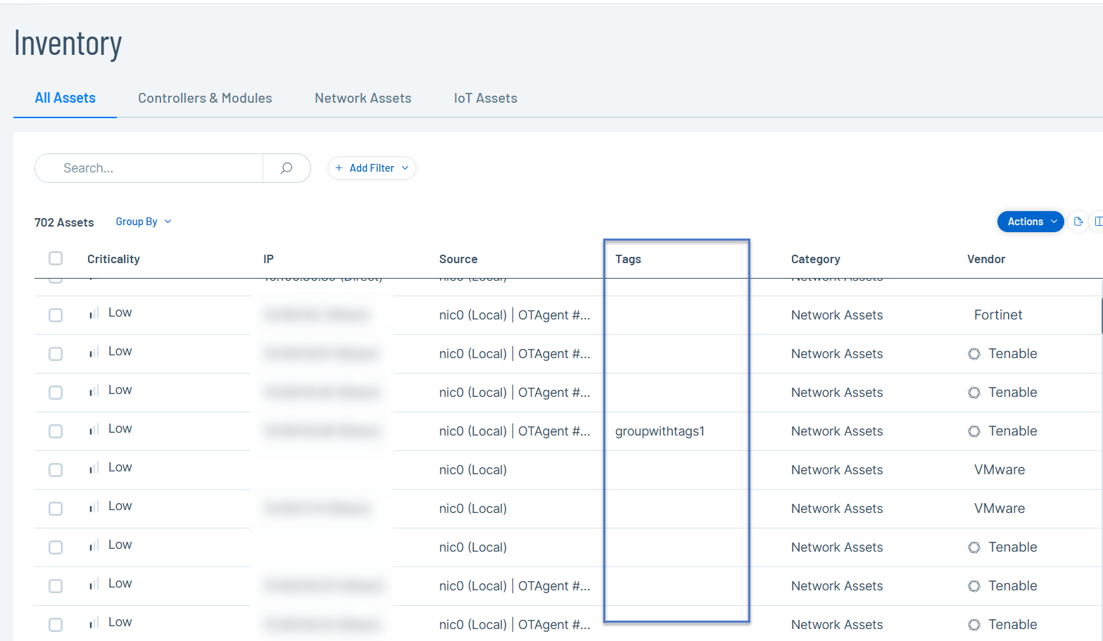 Tags help group assets based on a specific criteria allowing you to streamline and prioritize various workflows. When you create groups, OT Security converts these as tags on your assets.