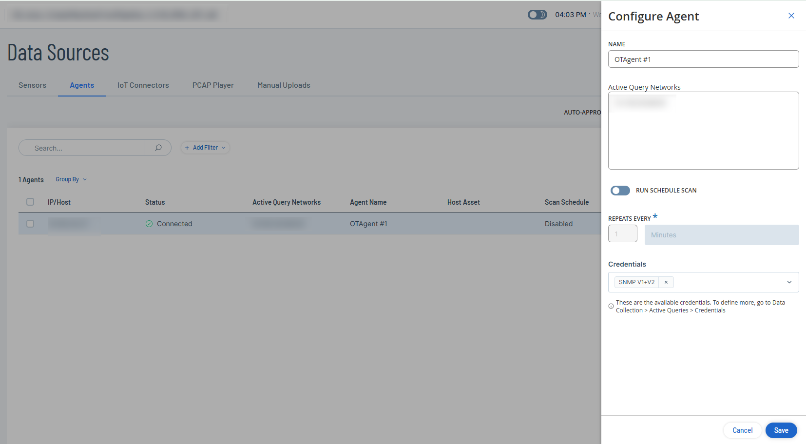 Note: The OT Agent scans only those active query network IP addresses that are part of the Monitored Networks (Environment Settings > Network Definitions > Monitored Networks). -