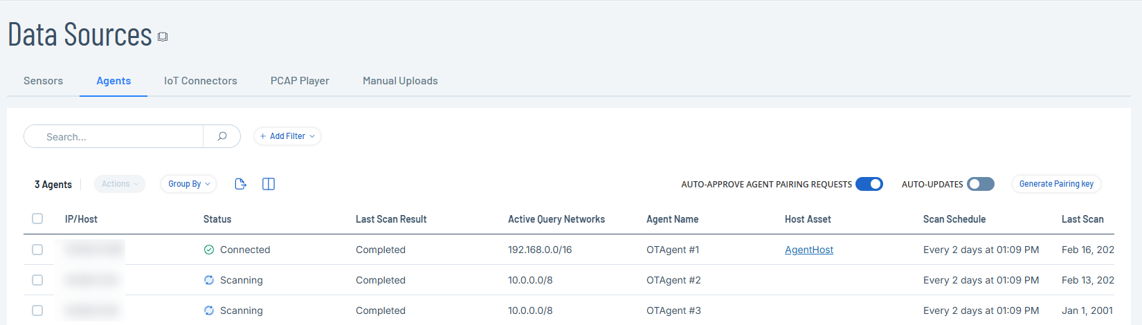 Note: To initiate scans for multiple agents, select more than one OT Agent, then click Bulk Actions > Scan Now. -