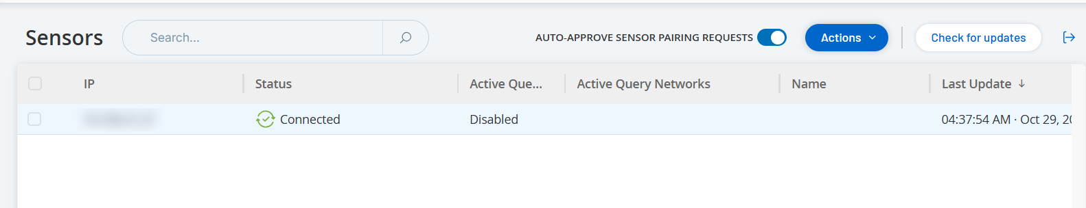 Note: Sensors that use Unauthenticated Pairing can only passively scan their network segments and the ICP cannot manage them to send Active Queries. -