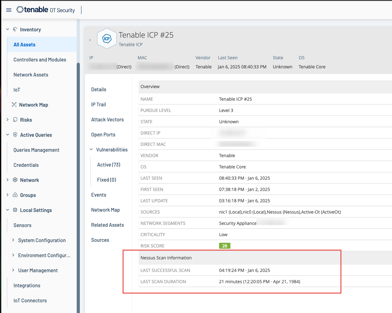 The date and time when OT Security most recently detected the asset. OT Security may update this field when replaying a PCAP (traffic capture file) or performing a similar analysis. |