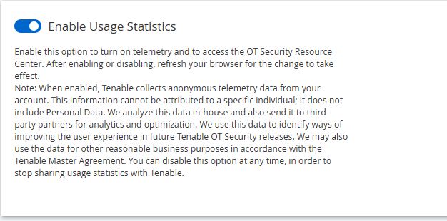 Note: Access to Resource Center requires internet. The Resource Center is disabled by default. To enable Resource Center, go to Settings > System Configuration > Device, and click to enable the Enable Usage Statistics toggle.