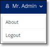 Shows the name of the user who is currently logged into the system. Click the down arrow for menu options: About (shows software info) and Logout.