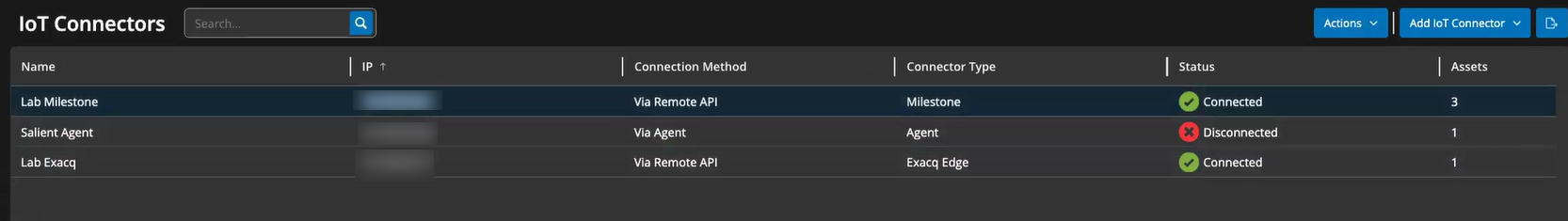 Select the IoT connector you want to test, then click Actions > Test Connection.