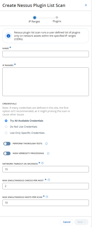 The Nessus Plugin Scan launches an advanced Nessus scan that executes a user-defined list of plugins on the assets specified in the list of CIDRs and IP addresses.