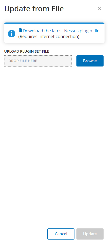 Note: Downloading the latest Plugin file from the link is only possible through an internet connection, such as with an internet-connected PC.Click Browse and navigate to the Plugin set file you downloaded from the OT Security Customer portal.