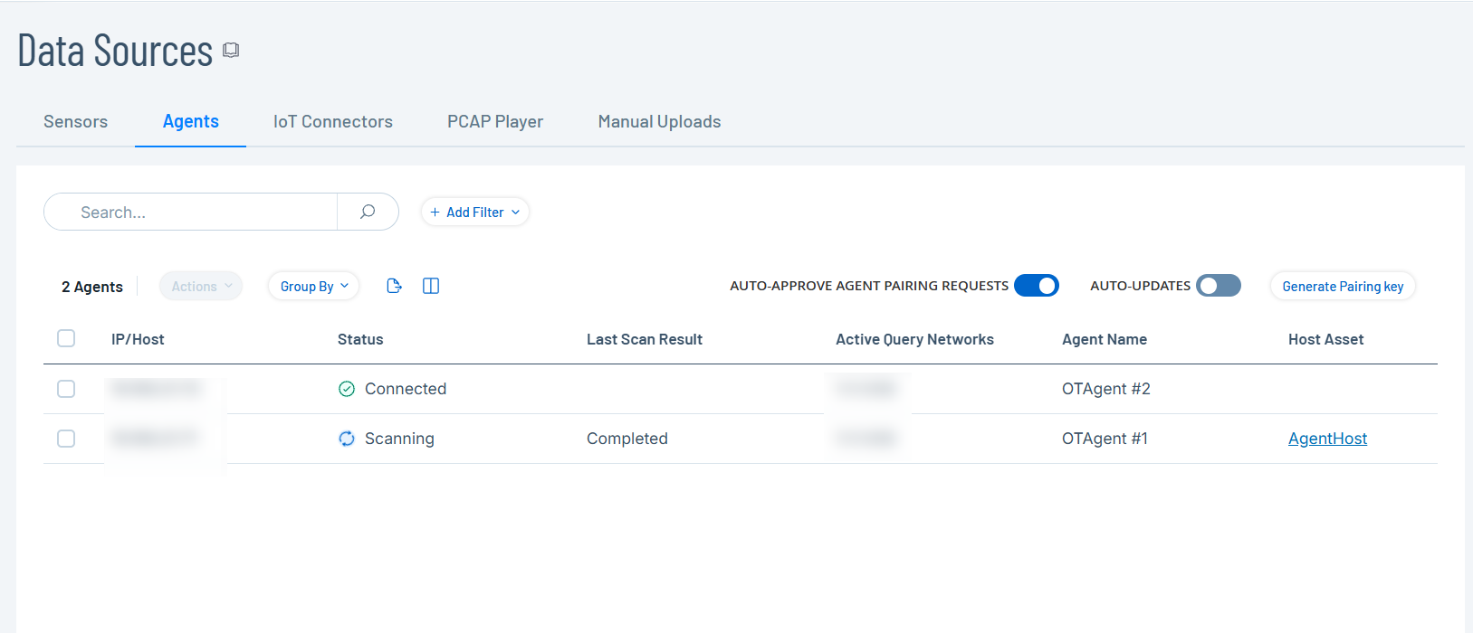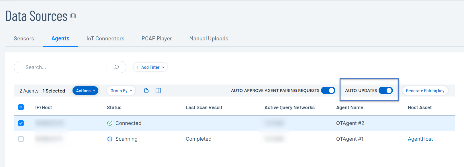 Note: To initiate scans for multiple agents, select more than one OT Agent, then click Bulk Actions > Scan Now. -