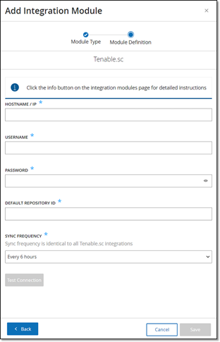 In the Hostname\IP box, type a hostname or an IP address of the Tenable Security Center system.