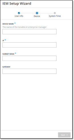 On the Device page, provide the information about the OT Security platform: