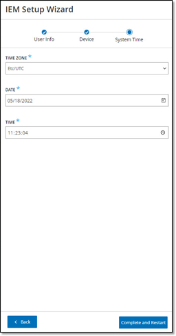 Note: To edit any of the previous pages of the setup wizard, click Back. After you click Complete and Restart, you cannot return to the setup wizard. However, you can change the configuration settings on the Settings page of the user interface. -