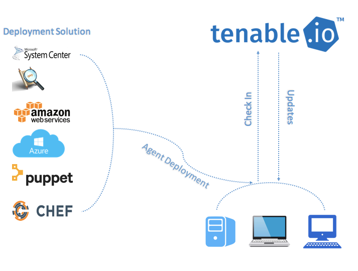 If you want to deploy agents across a large-scale environment, your deployment strategy must ensure that all agents are continuously active and stay connected to Tenable Vulnerability Management or Tenable Nessus Manager.