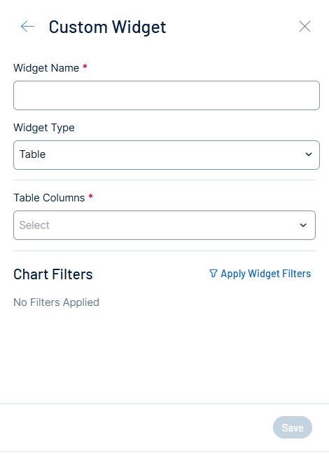 From the Widget Type drop-down, select the type of data graph you want to use on the widget, for example, Pie Chart or Table.