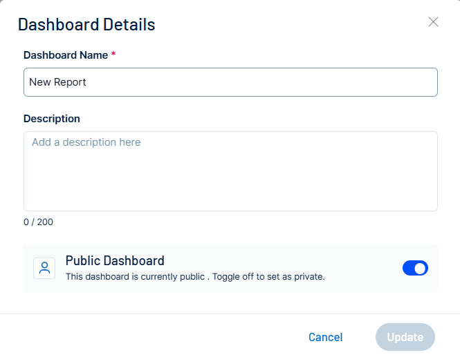 In the Private Dashboard section, enable or disable the toggle to set the dashboard as Public or Private.