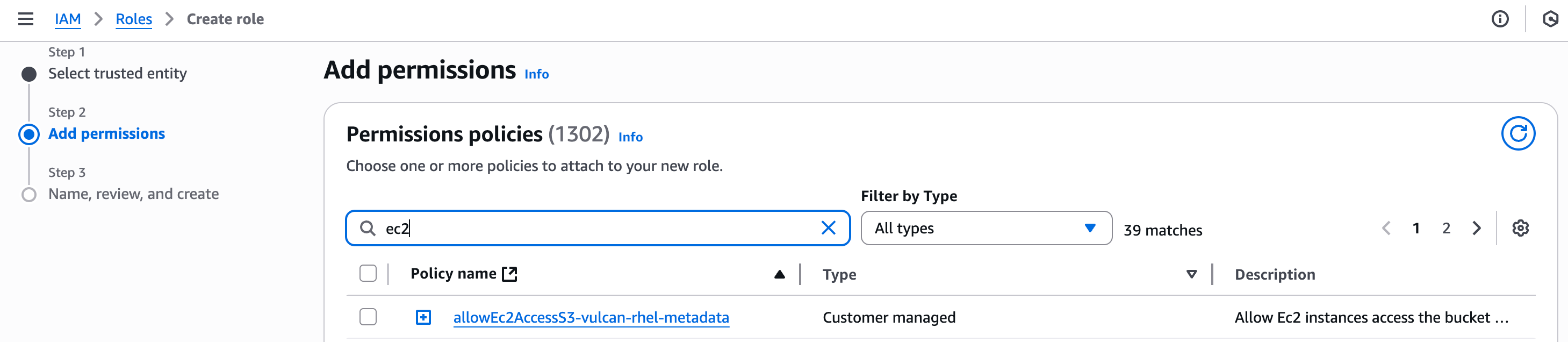 Under Actions, select the inspector2:ListFindings permission.