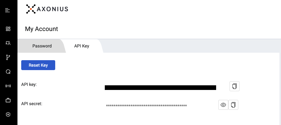 In the API Access Key and API Secret Key text boxes, paste the secret credentials you generated in Axonius.