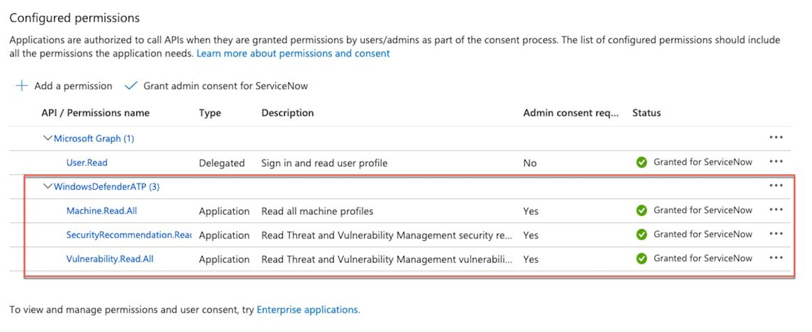 Navigate to APIs my organization uses and click WindowsDefenderATP.