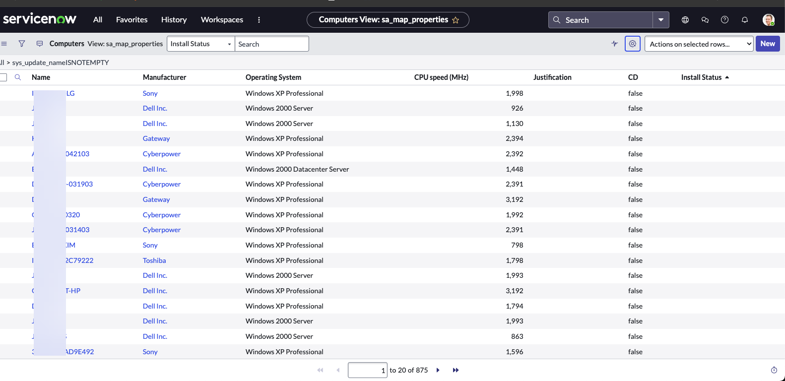 Click the relevant table (for example, cmdb_ci_computer) to open the list of records.