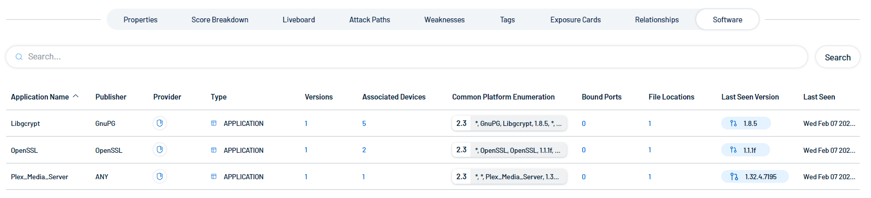 Bound Ports — The number of ports on the asset that are bound to the software application.
