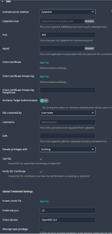 Note: The Username option also adds the Address parameter of the API query and assigns the target IP of the resolved host to the Address parameter. This may lead to failure to fetch credentials if the CyberArk Account Details Address field contains a value other than the target IP address.