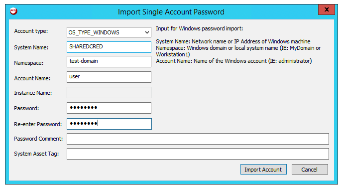 For this example, we created: user - test-domain/user and machine - sharedcred.