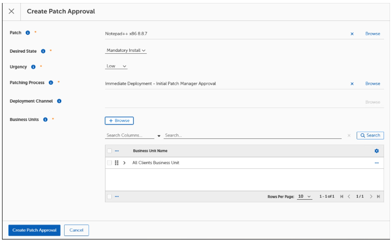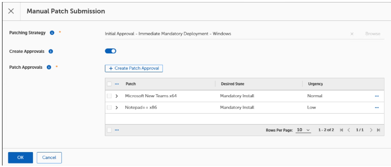 When you submit patches to an enabled strategy, you may also create approvals specific to the individual patch. Otherwise, the patching process and bots create the approvals automatically based on the process or bot settings.