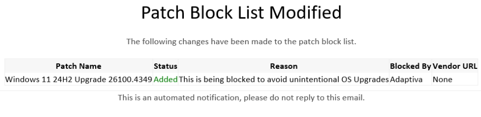 Tip: You can enable blocklist notifications to receive automatic notifications when Tenable Patch adds blocked patches.