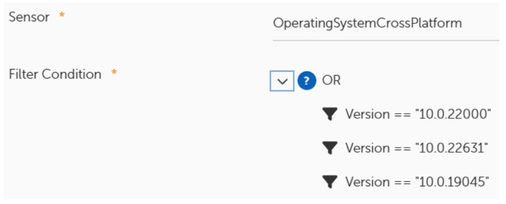 A sensor can be used to filter by the current Operating System.