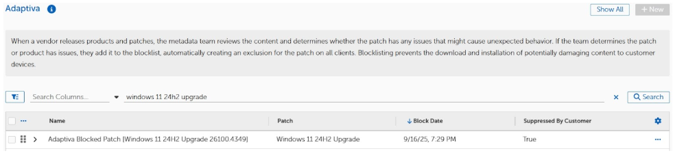 Before you unblock the Blocked Patch you should review ALL Strategies. If any Strategy has Include All Products enabled, you should add the Windows 11 OS Upgrade to the list of Excluded Products to ensure it does not get deployed by that Strategy.