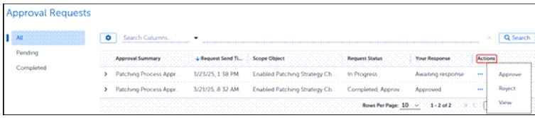 Select Approval Requests from the left navigation menu of the Patch dashboard.