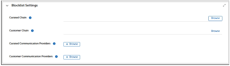 Select + Add Communication Providers for either Curated Communication Providers or Customer Communication Providers from the Blocklist Settings.
