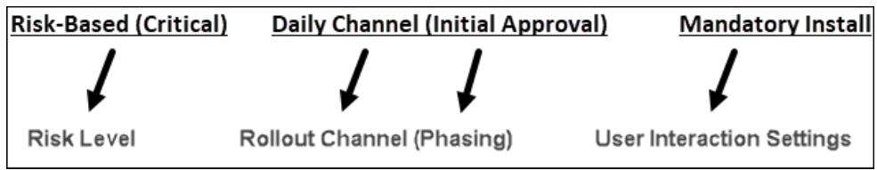 These templates filter several aspects of patches based on risk. They include different rollout schedules and approval levels, and all require mandatory installation.