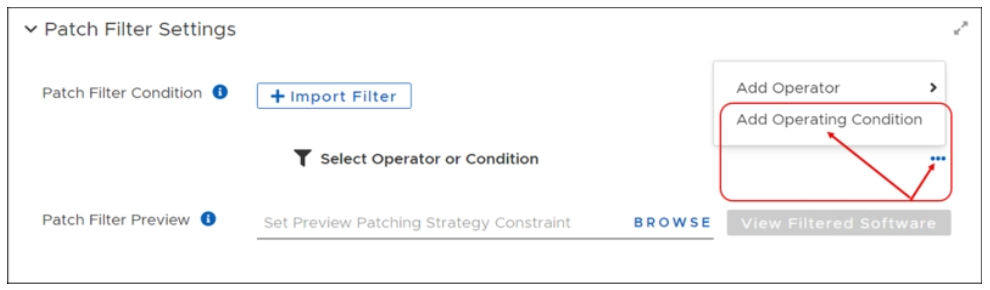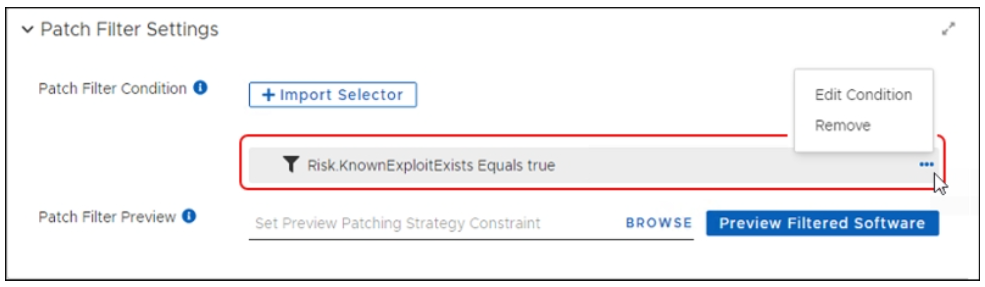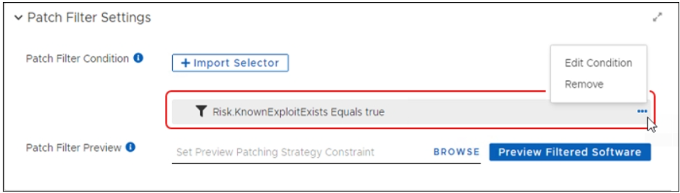If you want to remove a Patch Filter Condition, select the ellipsis (...), and then select Remove.