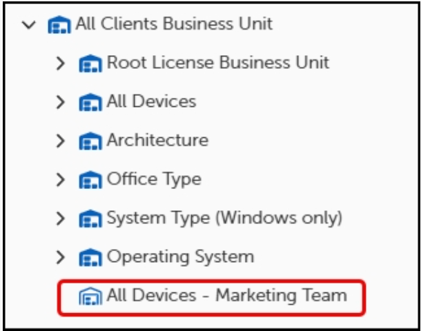 These groupings determine how patches, settings, and policies are applied to devices. Business Units can also be used to directly target customized products.