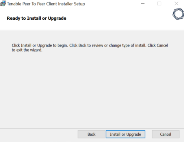 Once executed, the Patch P2P Client MSI installs the full Patch Client. The MSI does not contain the full client installation. Instead, the MSI – which is specific to a particular version of the Patch Client agent – first looks for the Patch Client on a peer system in the same subnet with the correct version. If a device is found with the correct version, it retrieves the setup executable tenable-patch-client-<version>-windows.exe from that local client and installs the Patch Client from that executable. If a peer is not found with the correct version, the MSI retrieves the executable tenable-patch-client-<version>-windows.exe from a UNC or URL path specified on the command line. If multiple systems run the MSI simultaneously and none of them find the correct version of the client locally, an election takes place among those clients. Only the winner of the election downloads the executable from UNC or URL path, and it then makes the executable available to the other client systems.