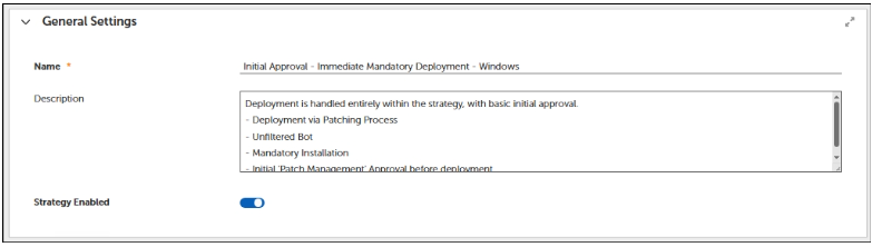 Enter a unique name that reflects what the strategy does conceptually. For example, Initial Approval - Immediate Mandatory Deployment - Windows.