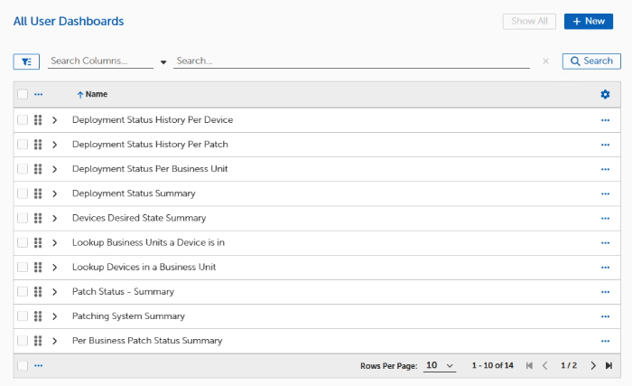 Dashboards offer real-time information about the status of objects within OneSite Patch. Some Dashboards are useful for a quick glance to confirm everything is running smoothly, or you can drill down deeper into specific widgets to see where you might need to take action. For instance, you can: