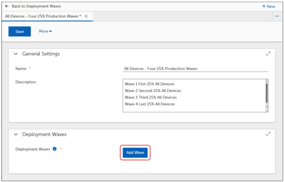 If creating multiple Wave Entries, repeat steps a through d to add another Deployment Wave.