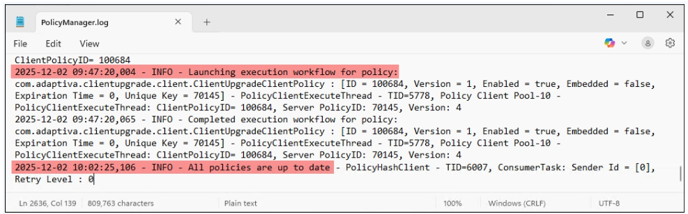 To verify if a device was properly synced, you can view the PolicyManager log via: