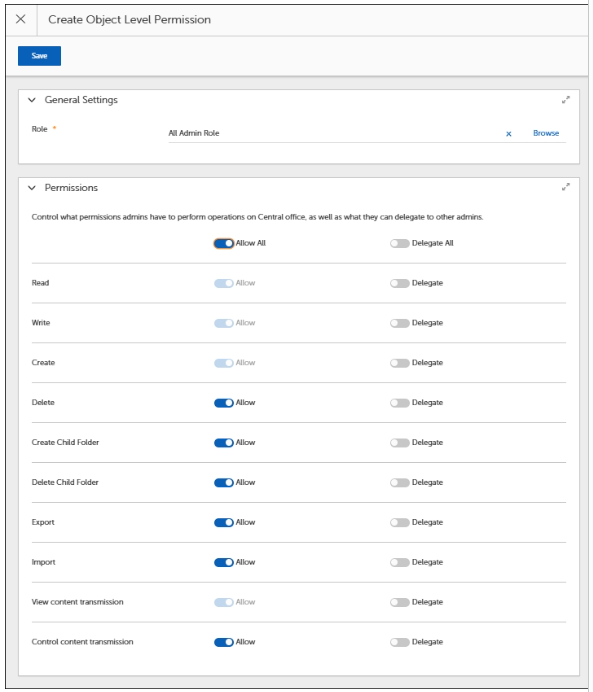 Manage Permissions: Manage Permissions settings allow you to manage permissions for specific Locations. This opens a Location Permissions overlay where you can view, edit, and create new permissions based on Roles. Steps to perform are: