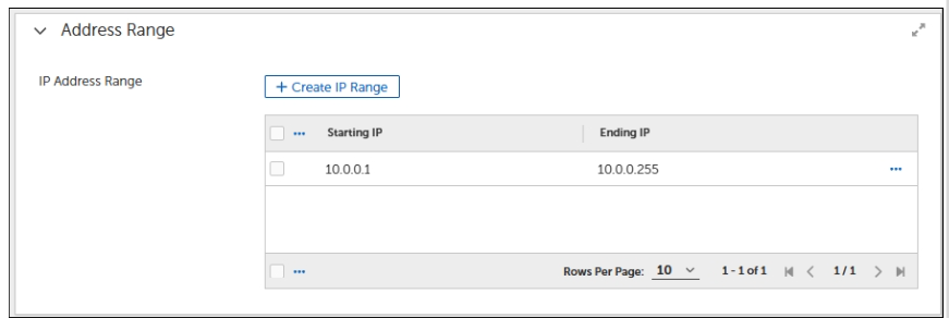 Click +Create IP Range.