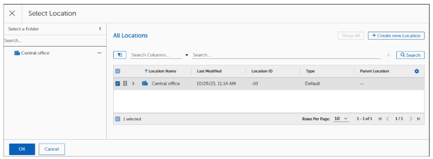 This task guides you on how to create a new Default Location. For a full comprehensive list of Location settings and actions, refer to Locations Settings and Actions.
