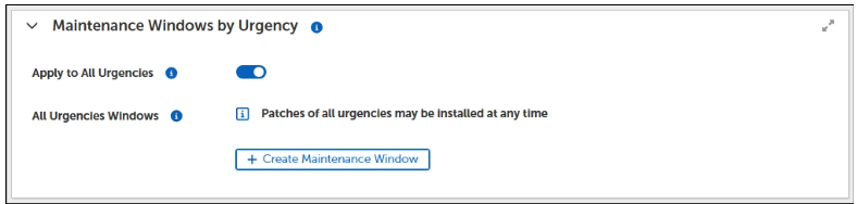 Maintenance Windows can include one or more schedules that deploy based on urgency settings (Low, Normal, High, and Critical). Urgency settings are cumulative, so higher urgencies inherit any settings specified at lower urgencies.