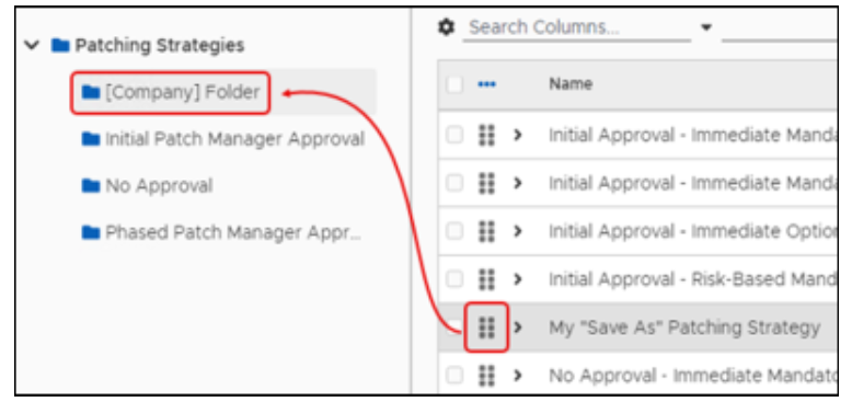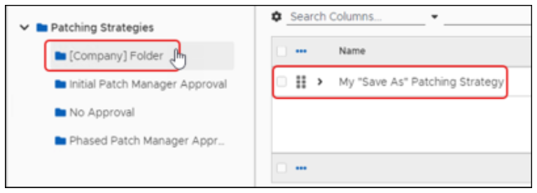 After creating a new folder to hold your object templates, use the following procedure to move saved templates from one folder to another. This example uses Strategy > Patching Strategies.