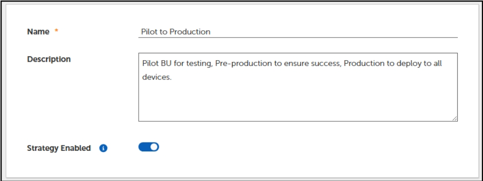 You have now created a new Strategy that effectively deploys to a pilot business unit for testing, then a pre-production business unit for a larger subset of devices to ensure further validate a successful deployment, and finally a production business unit to deploy to all devices.