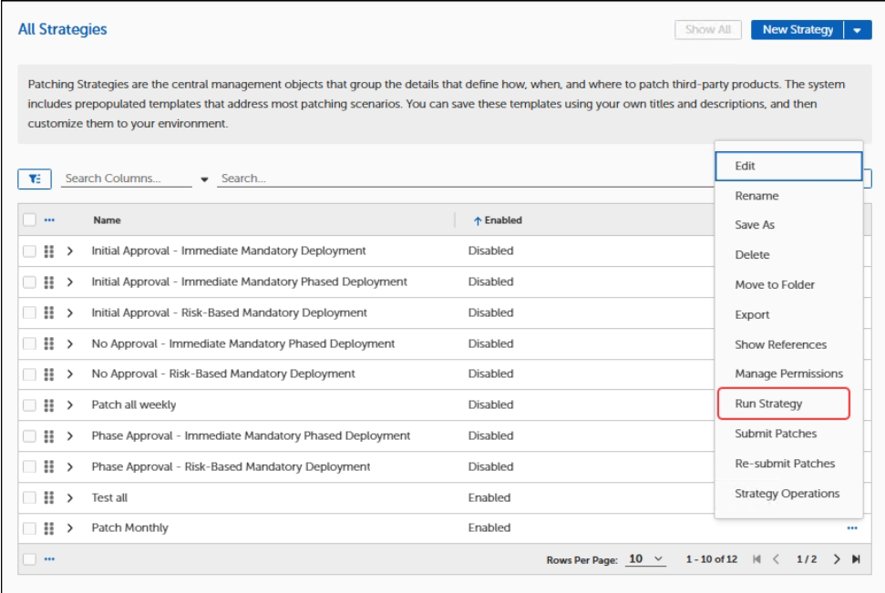 If you would like to run your Strategy immediately instead of waiting for the selected scheduled time, you can select the ellipses (...) next to your Strategy name in the table and the select Run Strategy.