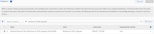 Select Flex Controls > Blocklisting > Blocked Patches.