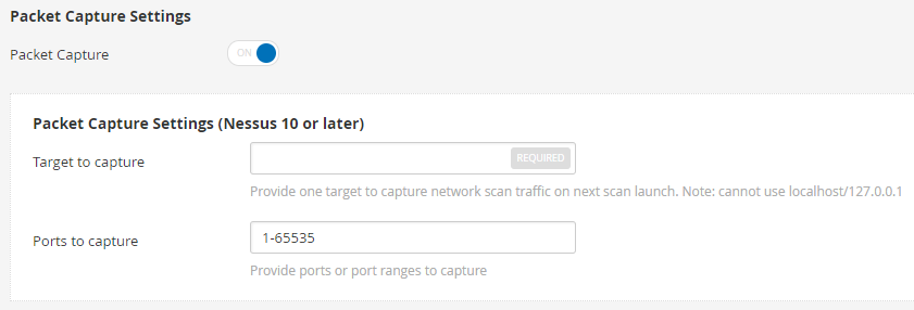 • Packet capture does not apply to Tenable Nessus scanners that are linked to Tenable Security Center.