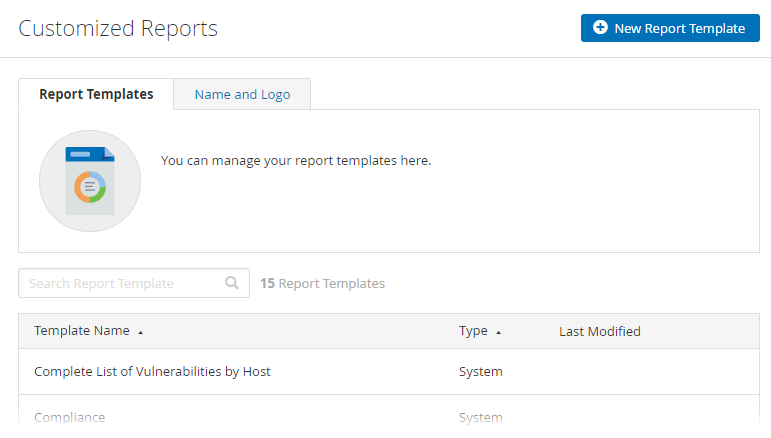 On the Customized Reports page, you can customize the title and logo that appear on each report and manage report templates.